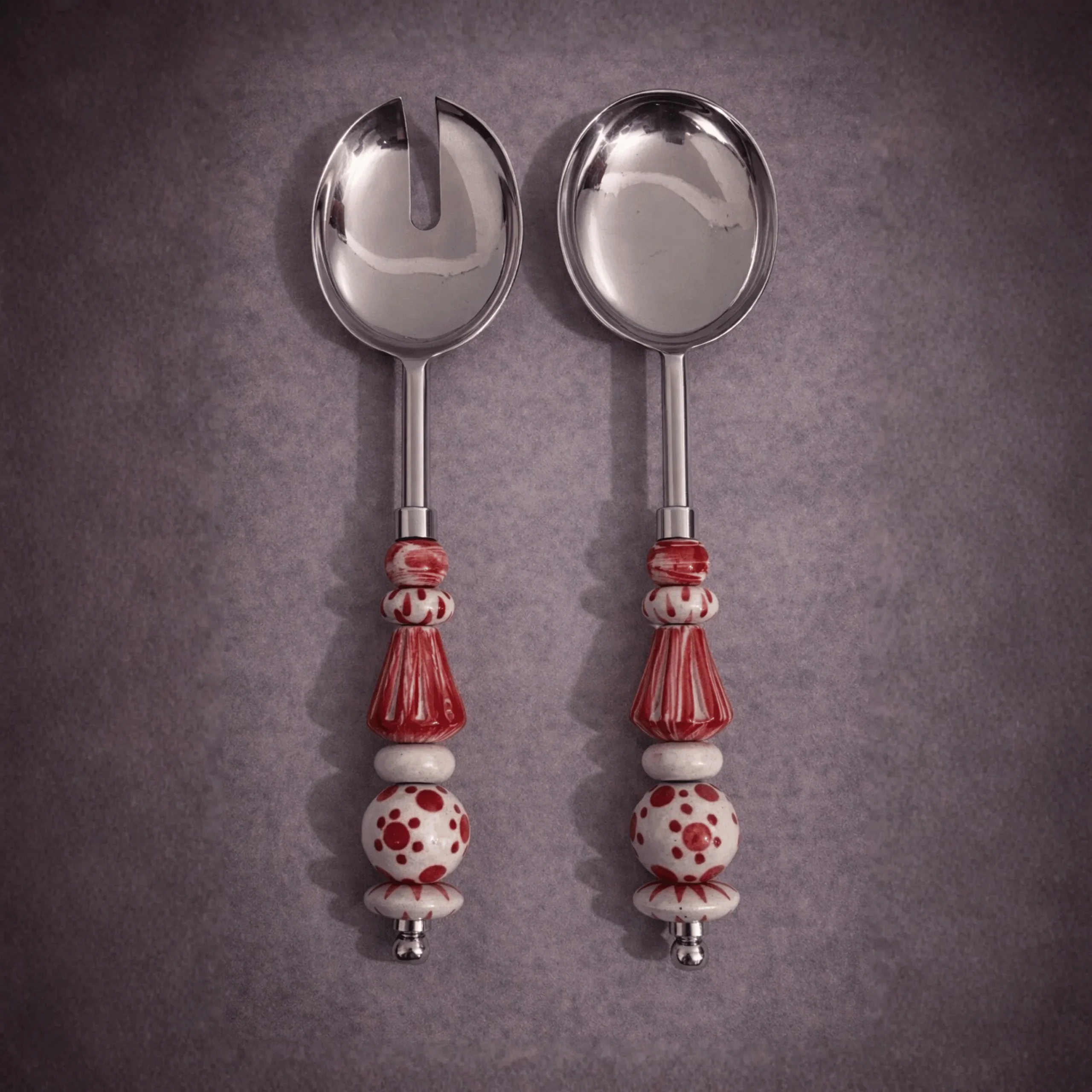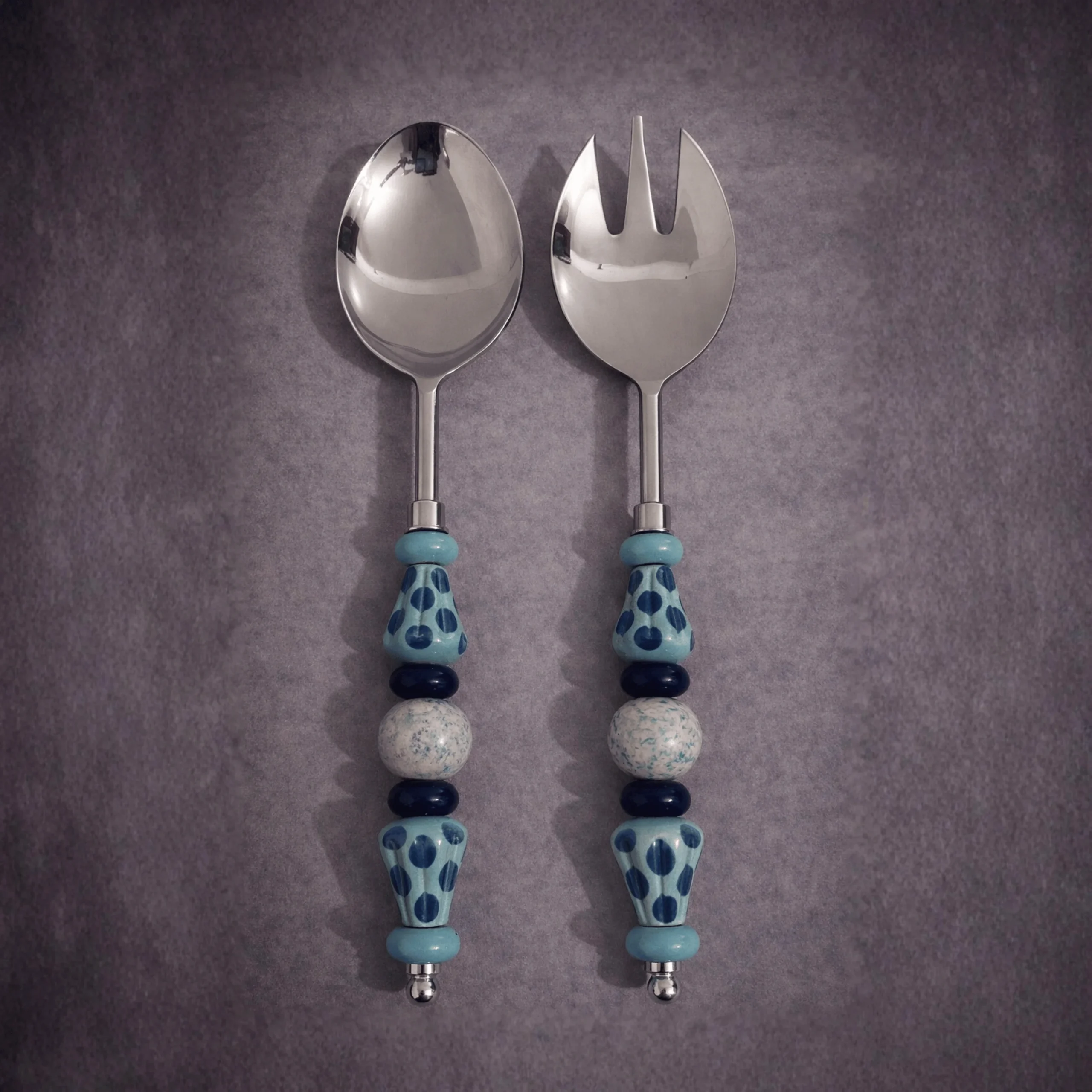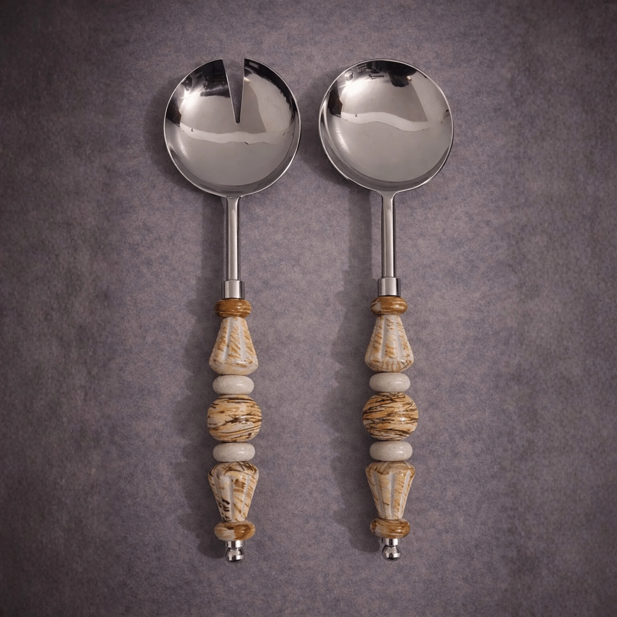 Serve salads with style using this handcrafted salad serving spoon set, featuring polished stainless steel
